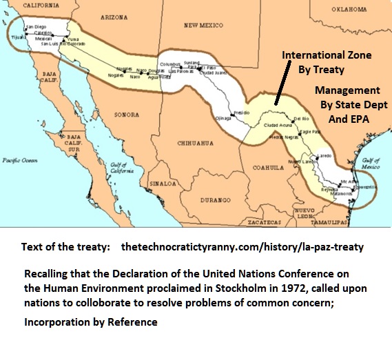 The stated purpose of the treaty was for a cooperative effort to clean up the environment in the border region. The treaty was written as an open-ended framework treaty that could be modified by agreement of the parties. The parties to the treaty could request assistance from anybody – any groups they wanted – including international organizations, the UN, NGOs, etc. Read the treaty carefully because it was this treaty that enabled the fifth column to be built and embedded in our government and to operate around this country.